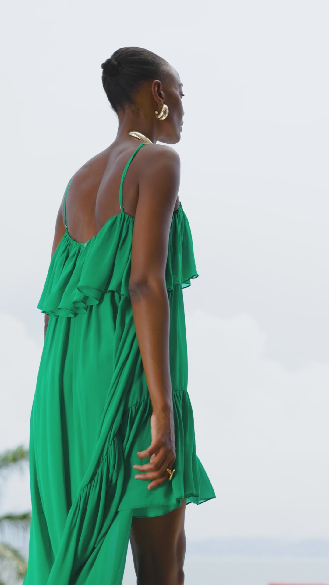 Vestido mullet em chiffon com alças finas Lança Perfume